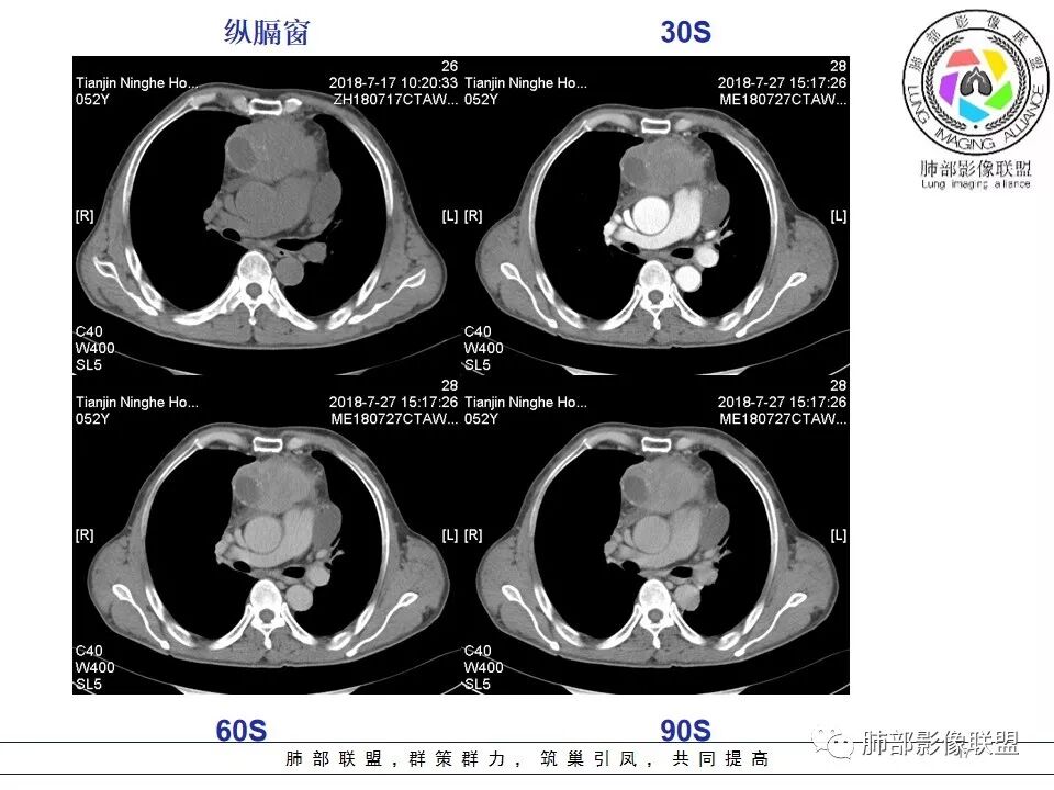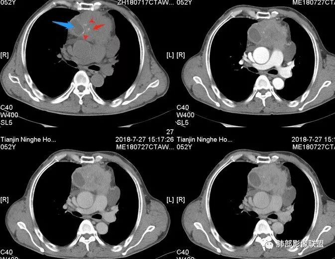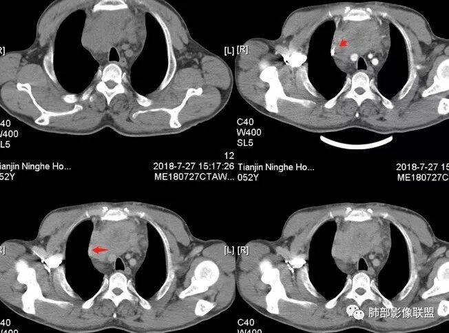 群锋:52岁,前上纵膈占位,密度不均,边界模糊,内有囊变坏死及钙化,强化不均匀,支持恶性,淋巴瘤(大B),胸腺癌?