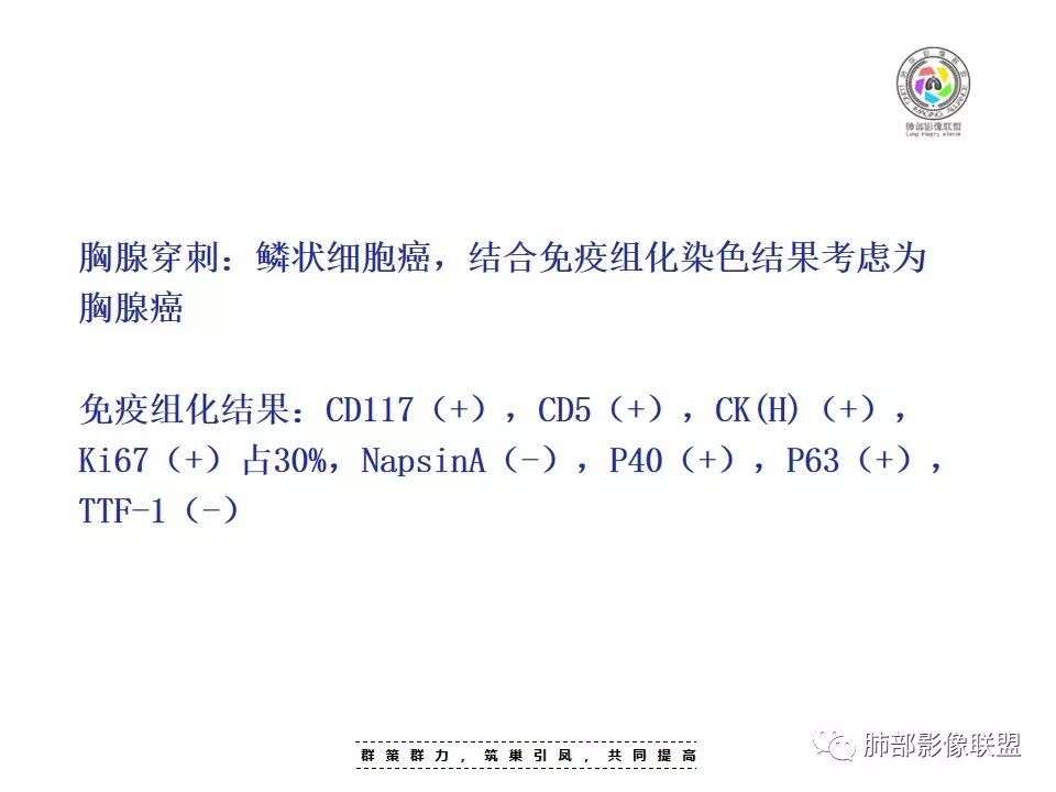 杨泽锋:大肿块周围有散在淋巴结,考虑胸腺癌。