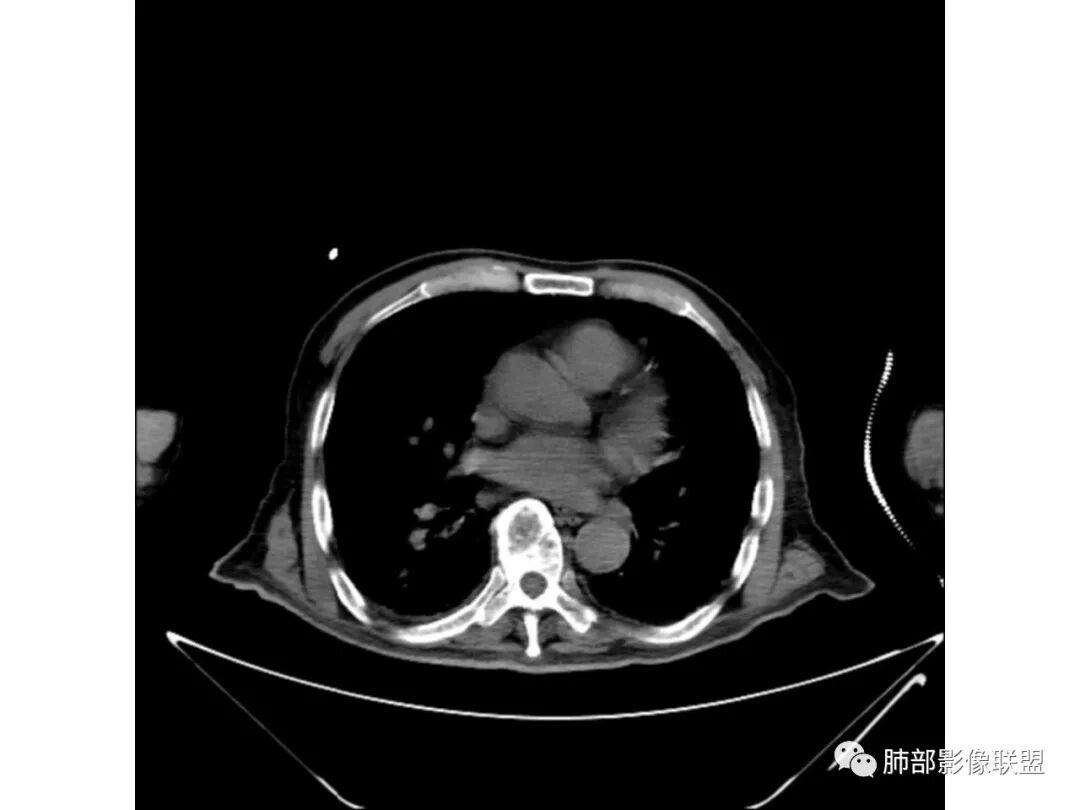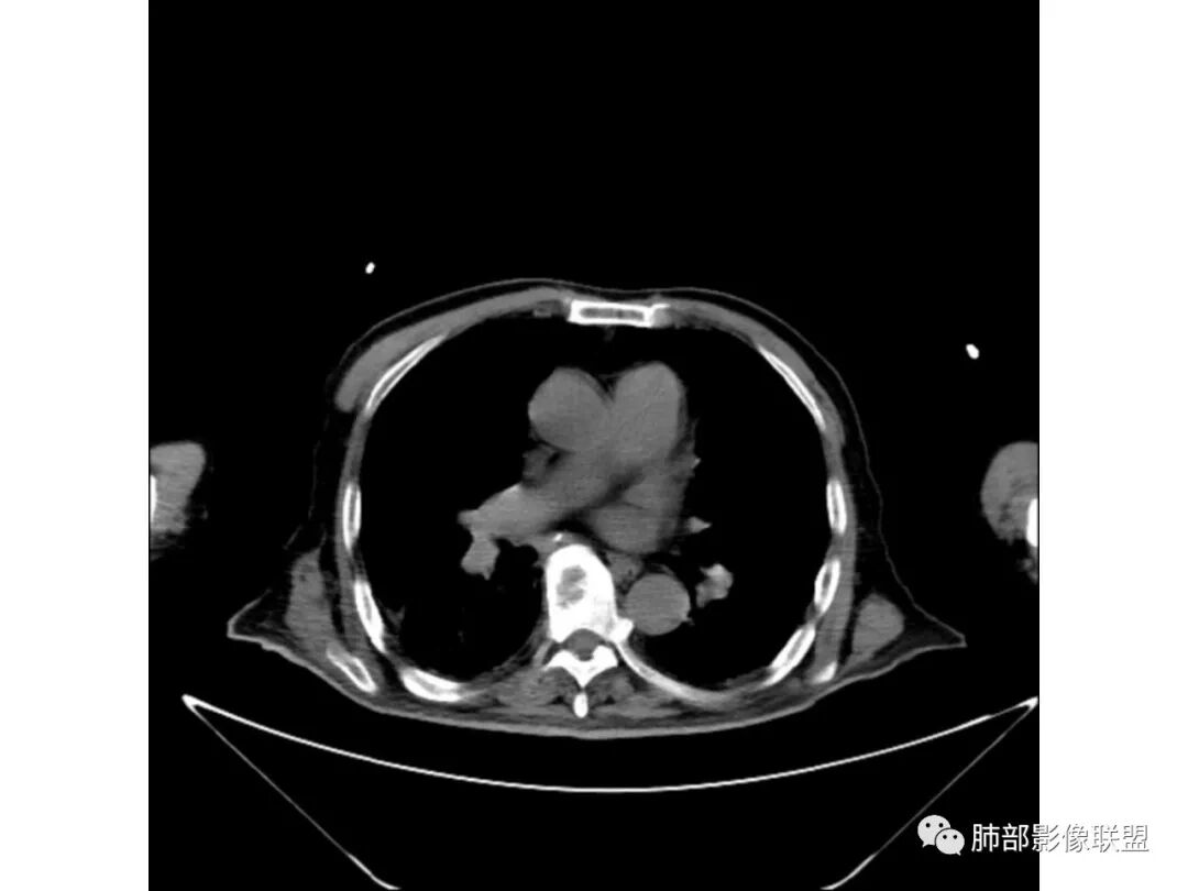 3、增强扫描很重要,增强后,结核的坏死很彻底,很少异常强化,(鳞癌也类同)。而粘液腺癌血管常显影,有时是毛糙的,整体密度偏低,哟其实纵膈窗。