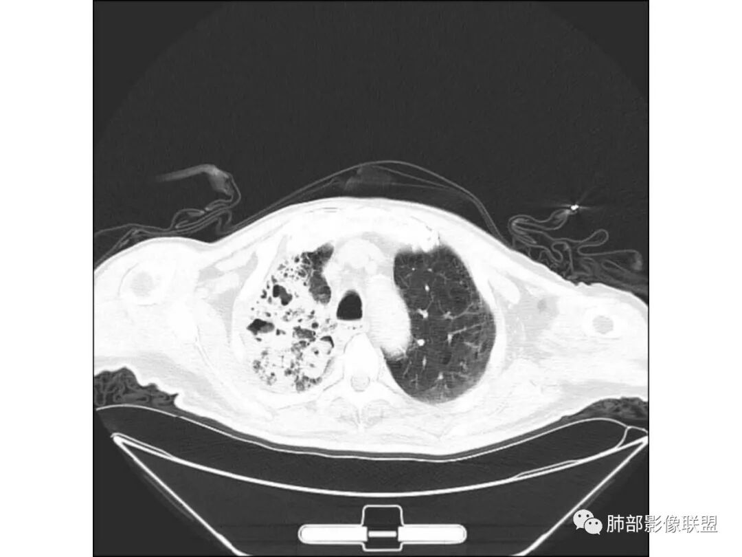 这是空洞,而且远端支气管扩张,右侧胸廓也是狭窄的