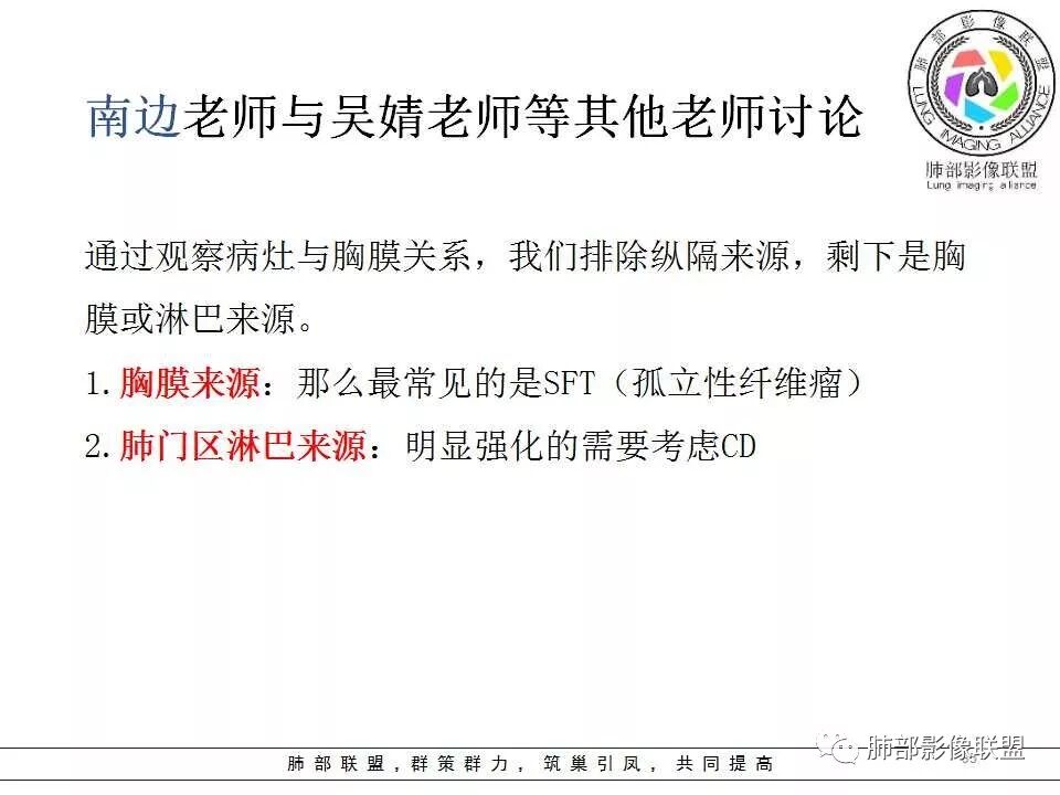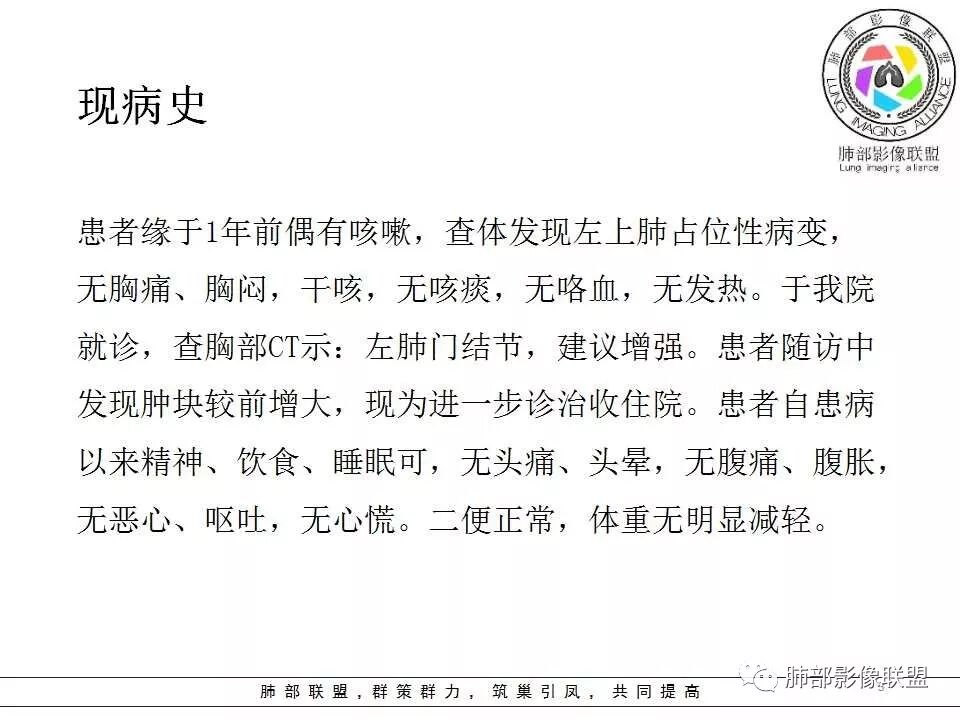 学习一下南大的诊断思路,左肺门区病灶,应该没跨叶,感觉都在上叶,强化密度均匀,边缘清晰,与支气管关系不大,常规考虑良性病变,PSP可能性大,鉴别CD,血管源性。但是一年增大怎么解释,不知道增大多少。