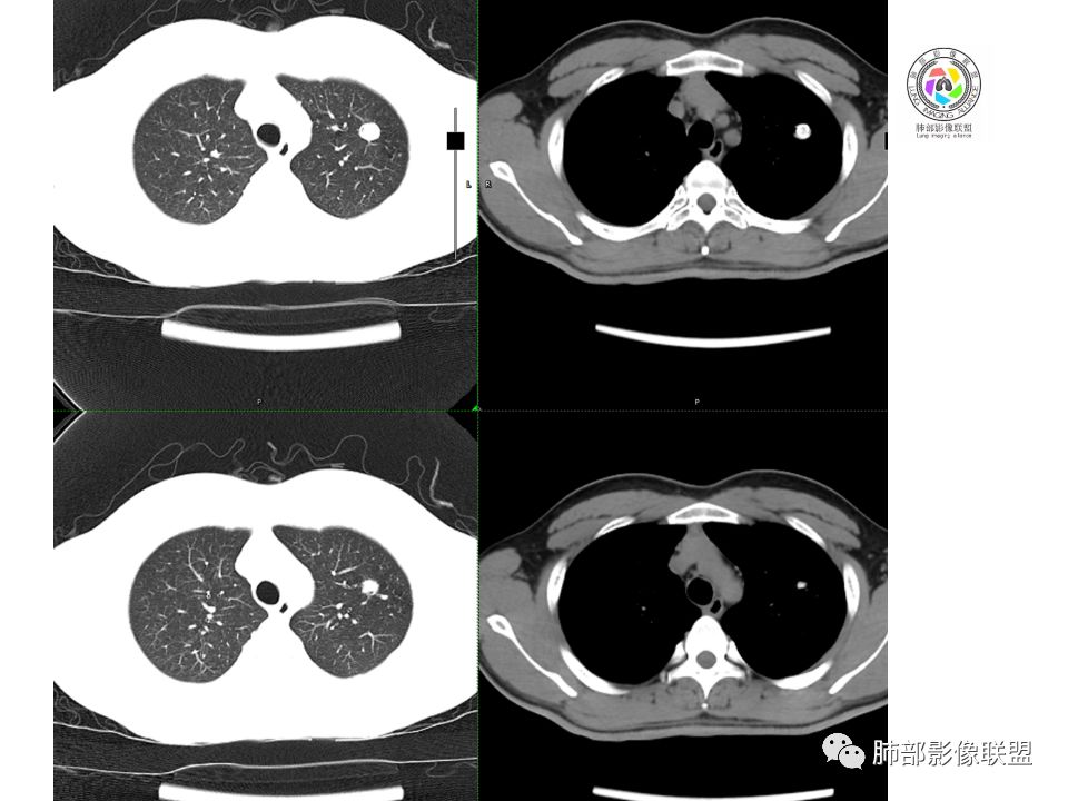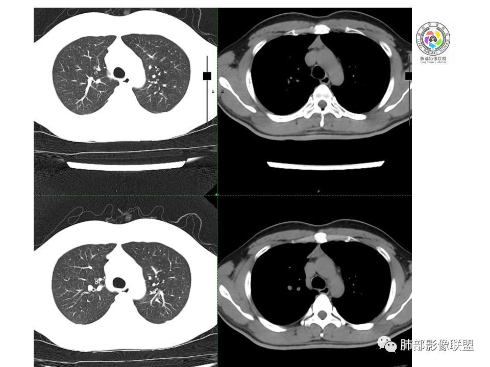 考虑胸腺瘤,左肺上叶良性结节钙化