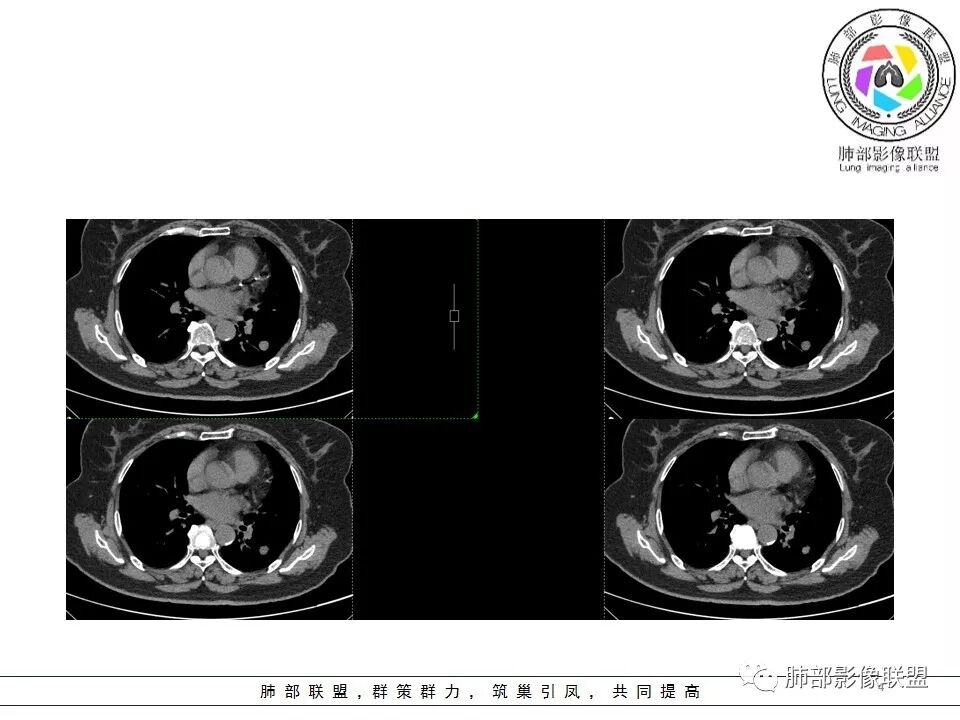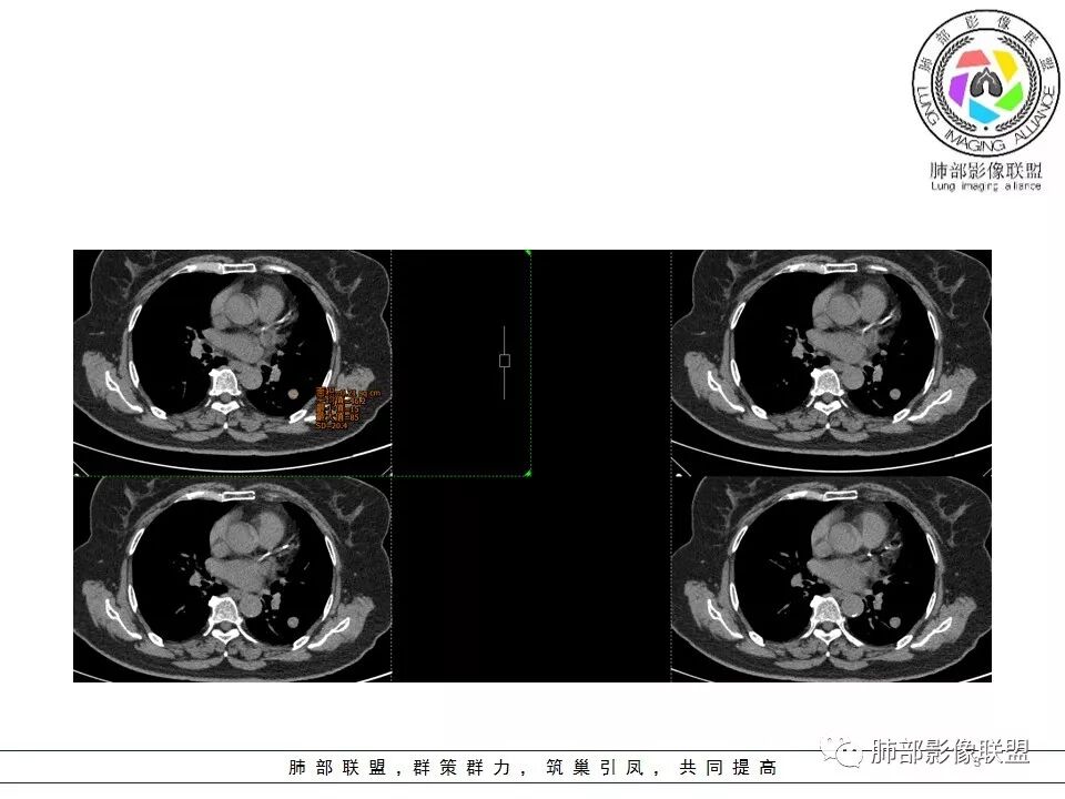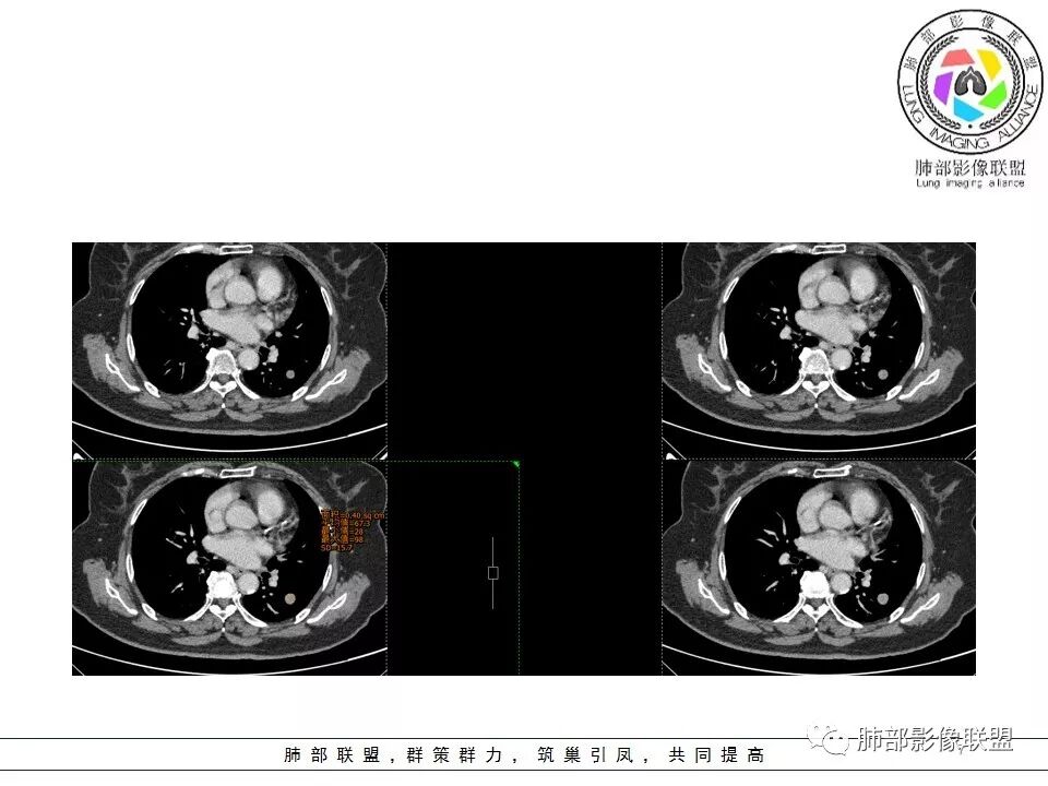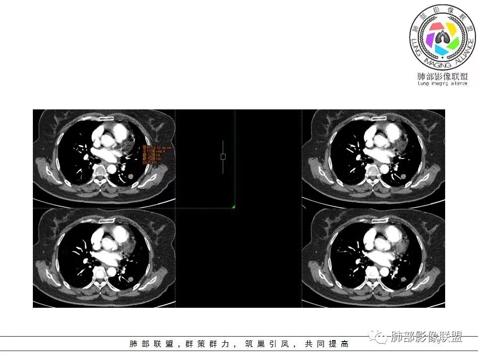 左肺界清结节,边界清楚,血管似贴边,似乎有强化,密度似均匀。考虑良性病变,psp可能性较大。增强后似乎内部又有低密度,图像太小太小,打上去的ct值都看不太清,希望保证图像质量,这是舅舅一直在强调的