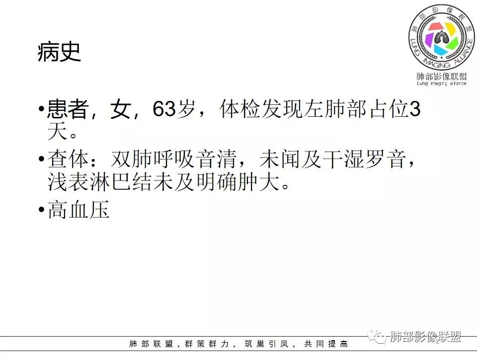 患者,女,63,体检发現左下肺占位3天。