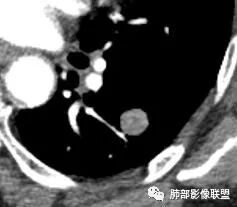 ●错构瘤虽然是良性肿瘤,但有时它也会缓慢生长,逐渐增大,周围血管也会出现推移,所以也会出现“血管贴边征”。