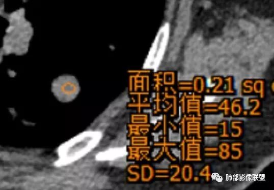 动脉期测量区域——中央,不是强化区域
