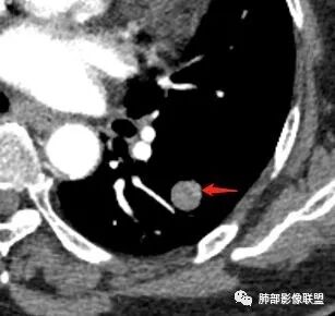 胸CT:左下肺背段类圆形实性结节,密度均匀,边缘光滑,未见毛刺 .毛刺,未见钙化及卫星灶,增强可见血管贴边,贴边血管似稍增粗,增强后动脉期未见明显强化,延迟期轻度强化,考虑良性病灶,PSP?