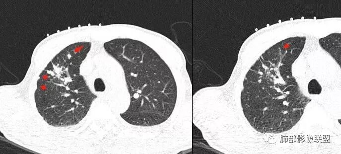 小兜:右肺上叶尖段结节,分叶,周边见细长毛刺及胸膜牵拉,周边多发卫星灶,考虑结核可能性大。