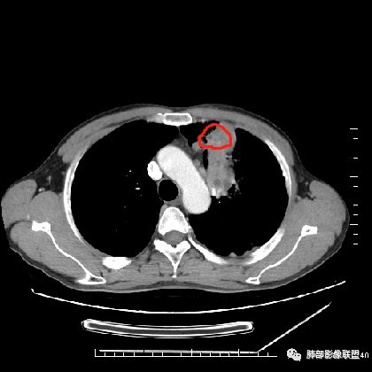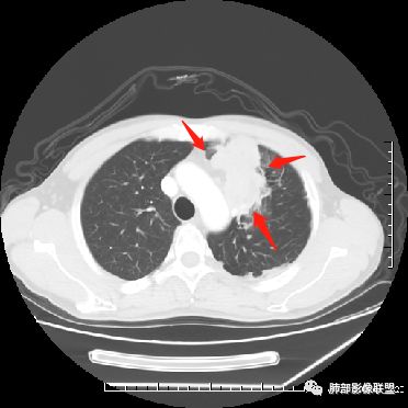 4. 应仔细观察病变的支气管情况,如果支气管出现腔内结节或阻塞征象,需要提示临床干预,用支气管镜、穿刺等手段来进一步确诊。