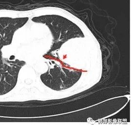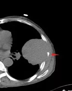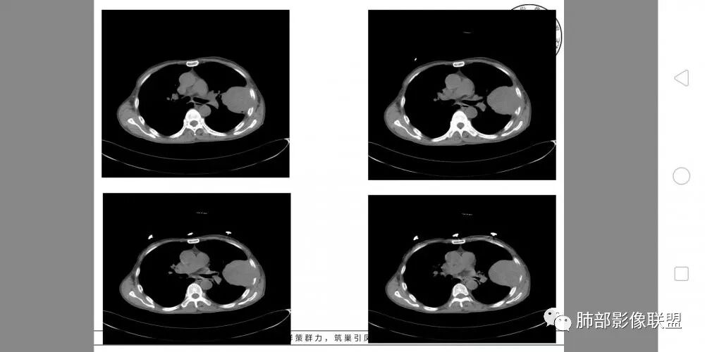 肋骨内侧面破坏为主,朝外有轻微的推移迹象。我觉得胸壁来源的放后面,特别是支气管的堵塞,这是肺外病变很少见的,SFT也有,罕见。