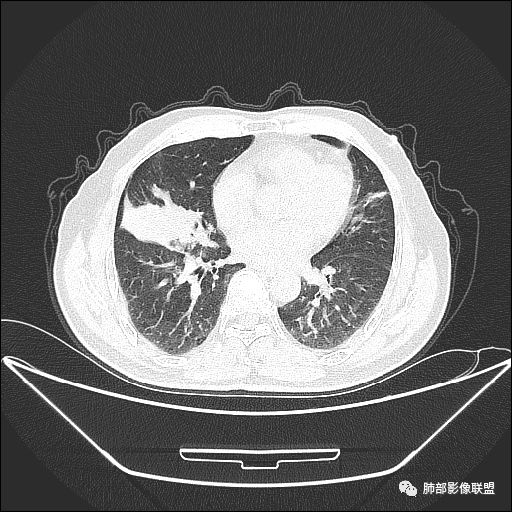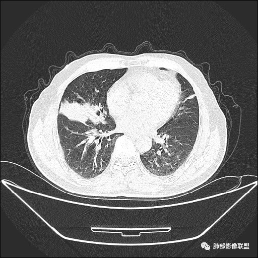 吴婧老师和南边老师都对该病例进行了深入分析。从支气管管壁的增厚,支气管狭窄后扩张,支气管粘液栓,病灶形态,到病灶不均匀强化及坏死彻底,到周边病灶及肺组织空气的潴留,加之纵隔内淋巴结肿大伴钙化等等,都支持慢性炎性病灶,尤其是结核。
