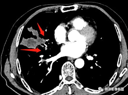 支气管进入其中,远端粘液栓