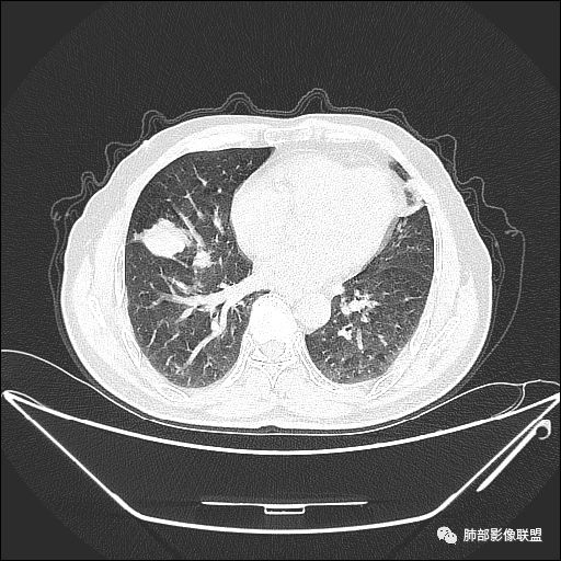 主病灶在中叶,但是还有结节状病变在下叶
