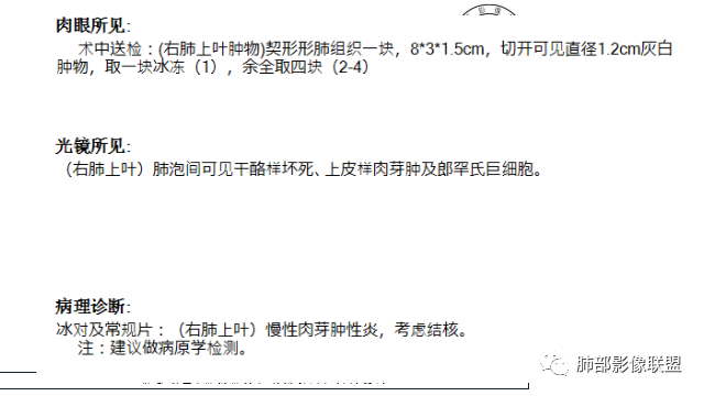 右肺结节,边缘平直,部分膨隆。增强呈环形强化。考虑肉芽肿性病变,结核?