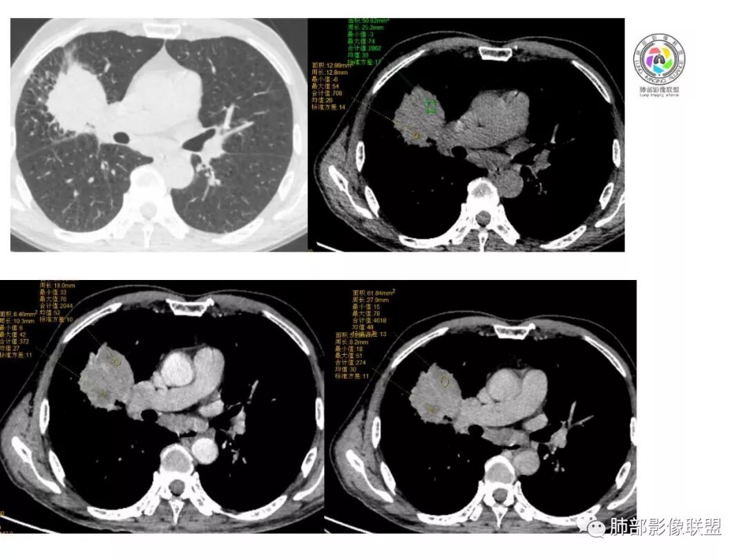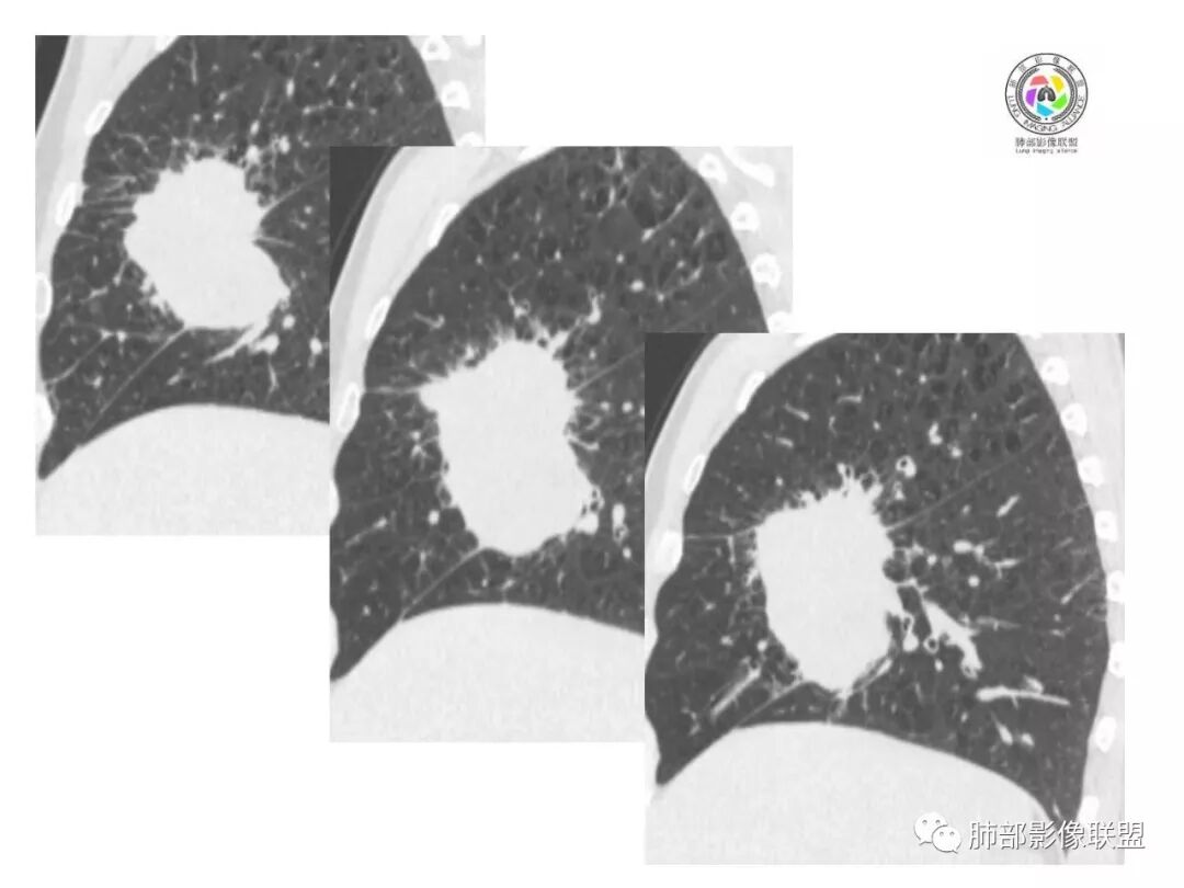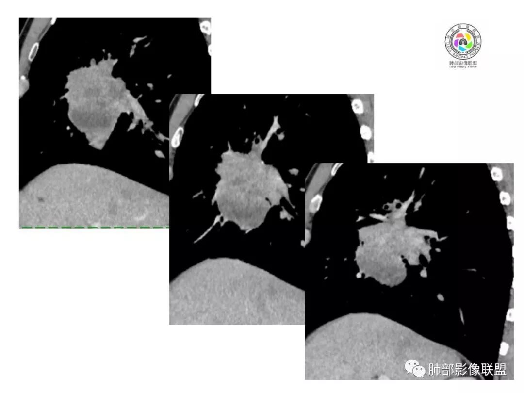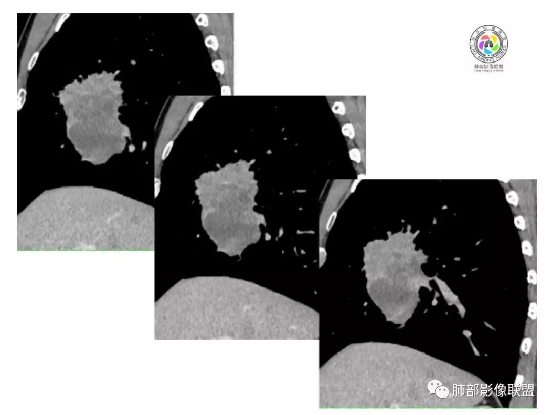 因为病灶有上皮成分和间叶成分,所以兼具肺癌和肺肉瘤的影像学特征,