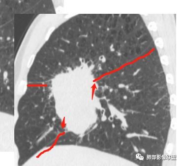 两种情况,第一是叶间裂这个地方正好缺如发育不好,第二是恶性肿瘤直接侵犯,这个显然是后者