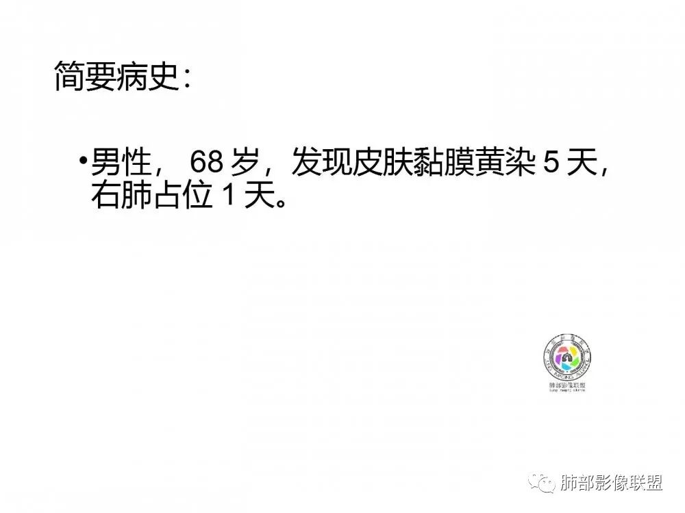 水晶石头:患者老年男性,发现皮肤粘膜黄染5天,右肺占位1天。
