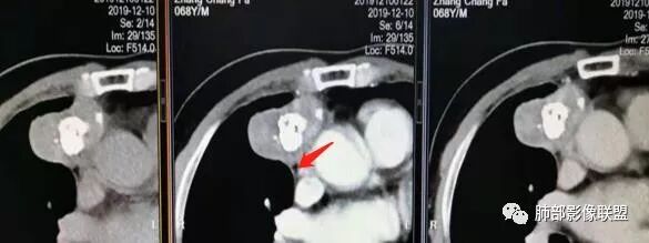 三个石头:前纵隔占位,不规则分叶肿块,内斑片状,点状钙化,内乳动脉增粗,肿块延迟强化。考虑良性占位,疾病谱畸胎瘤,胸腺瘤,巨淋。
