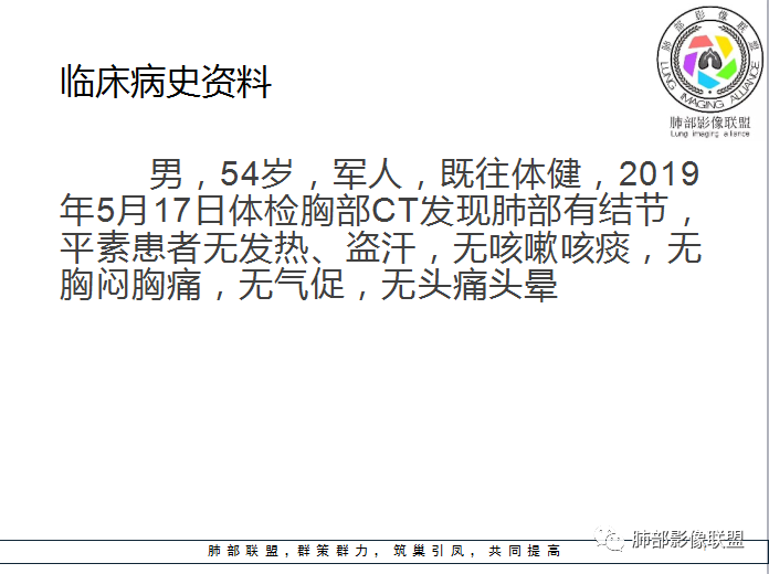 中年男性,平素体健,无呼吸异常主诉及体征,查血无明显异常。体检发现左肺上叶实性类圆形结节影,部分层面周围有磨玻璃晕症,可见血管进入,考虑良性,考虑炎性肉芽肿,考虑隐球菌感染可能,需与腺Ca、PSP鉴别