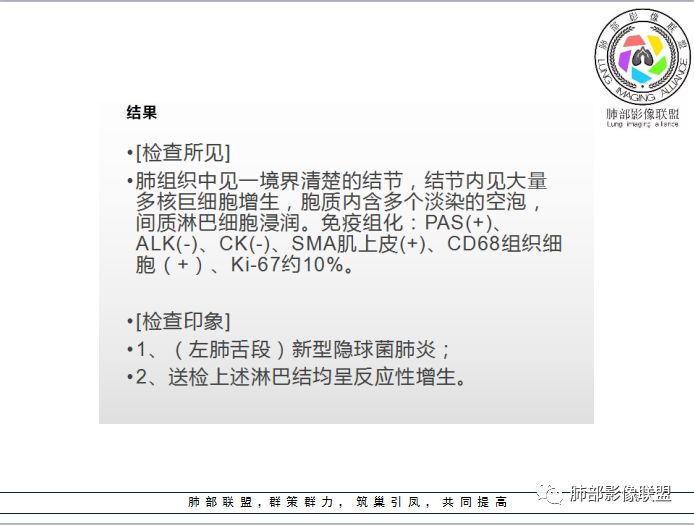 左肺结节边缘光整,周围似乎有晕,血管贴边,支气管有穿行,考虑炎性病变,隐球菌?