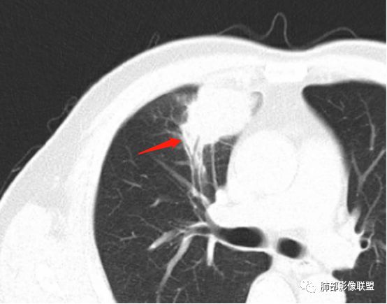 郑氏刀刀:截断支气管伴行的血管,增粗,但是无明显破坏浸润。