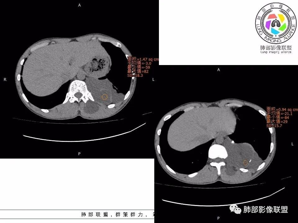 Coke with ice:脂肪考虑病灶内的,那就是畸胎瘤了