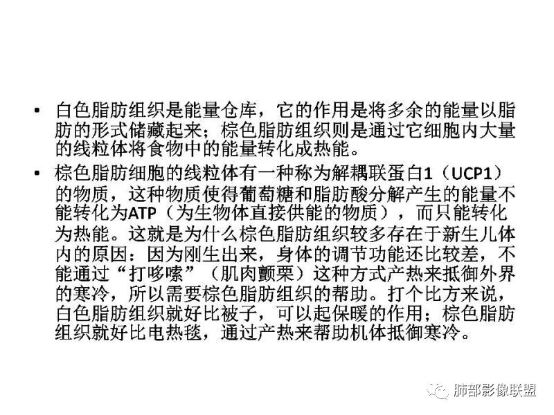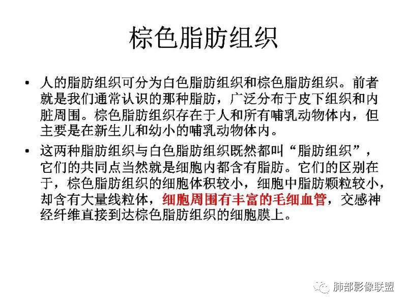 (棕色脂肪细胞比黄色脂肪内含有大量线粒体,且血供丰富,所以氧化充分且产热较多;寒冷可以刺激棕色脂肪细胞分界、氧化从而产生更多的热量,所以这种肿瘤体表上摸上去温度比较高。)