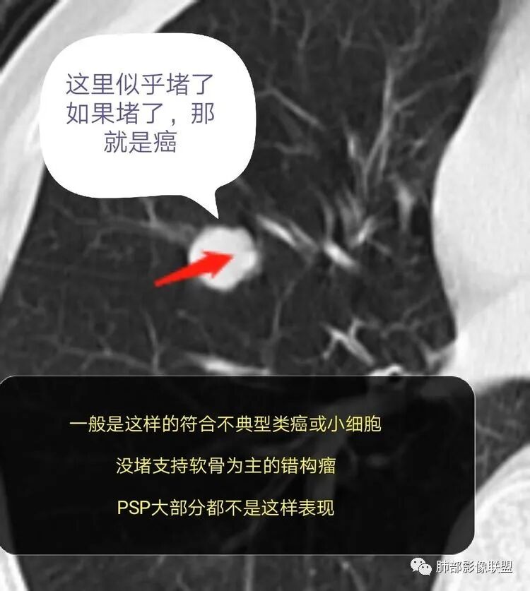 欣:边界清楚,有分叶,血管似贴边,考虑良性病变,PSP与错构瘤鉴别,优先考虑PSP
