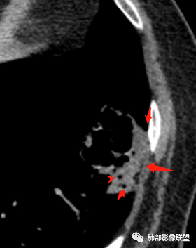 3、隐球菌感染:空洞较小,周围有晕征,胸膜下分布,融合趋势。