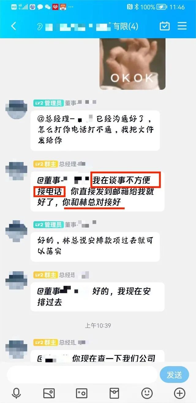 该公司平时就有“先转账后补手续”的操作,所以当群里出现相应转账指令时,会计轻易相信了;