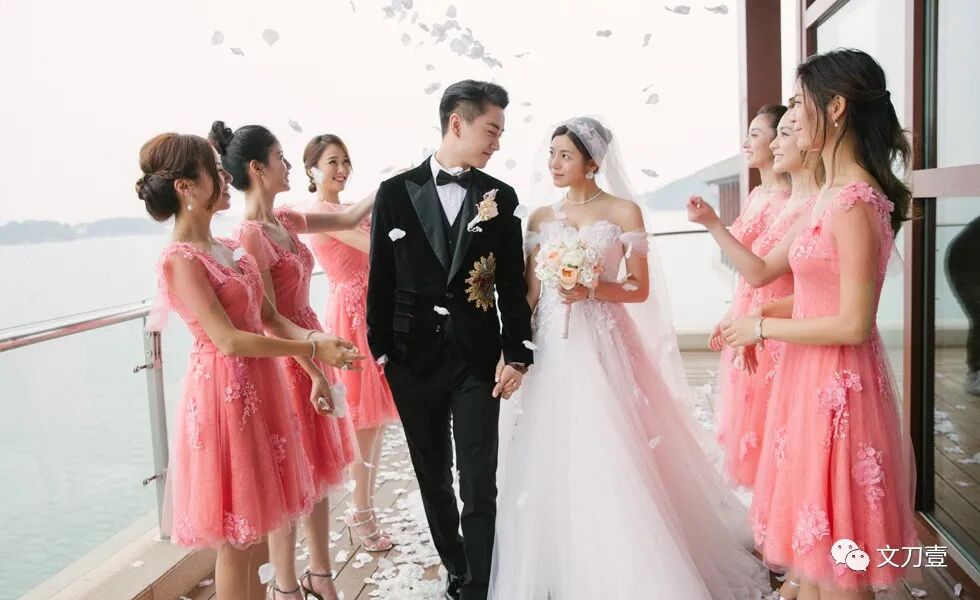 伴娘伴郎团尽管知名度不低,可都没有喧宾夺主,给足了这对新人面子,也让这场婚礼贡献了一个经典的镜头。
