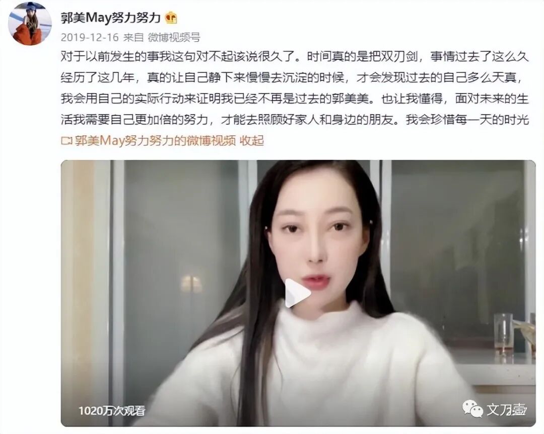 对自己当年犯下的错误沉重忏悔,并表示会用实际行动去证明,自己已经不再是过去的郭美美。
