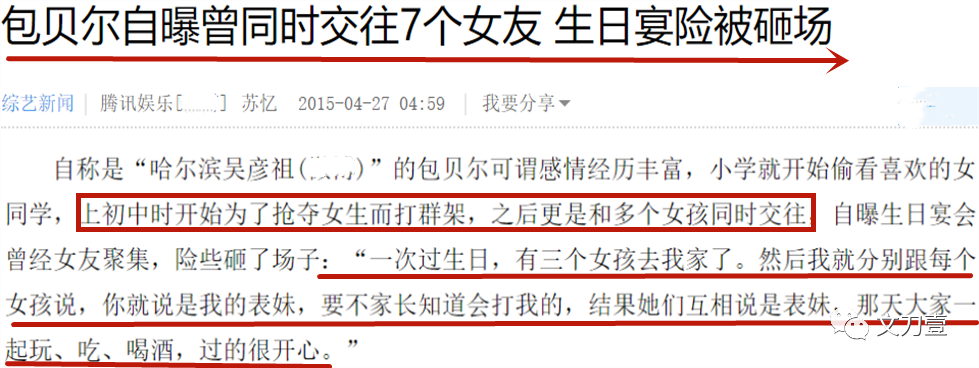 正是因为这样,十多岁的包贝尔在情场混得如鱼得水,在那时同时交往了四个女朋友。