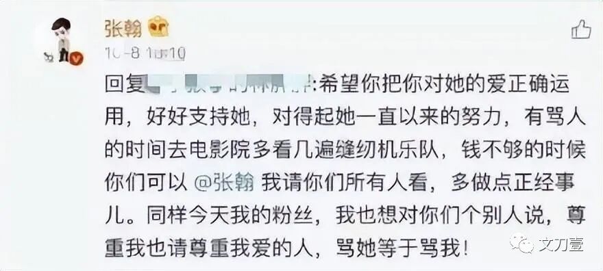 当然,也不忘教育自家粉丝:“骂她等于骂我!”