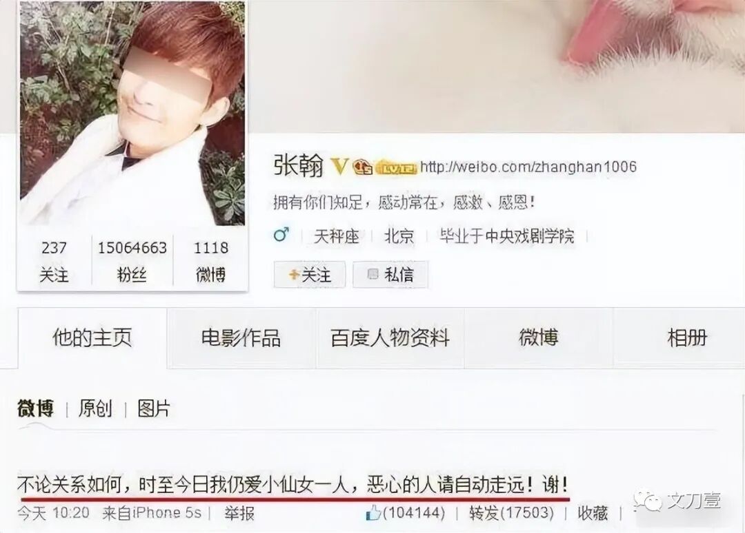 张翰却在2014年2月,发了这么一条博文后秒删:“现在,我终于相信和你步入婚礼的不一定是你最爱的人。”