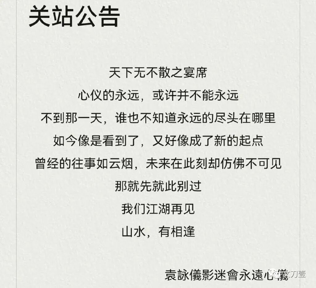 一个从1998年就建站,陪伴她至今的粉丝站,宣布24年的陪伴到此结束。