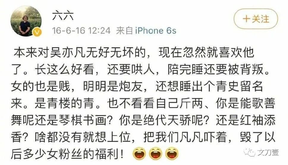 认为吴亦凡无辜可怜,“陪完睡还要被背叛”的六六。