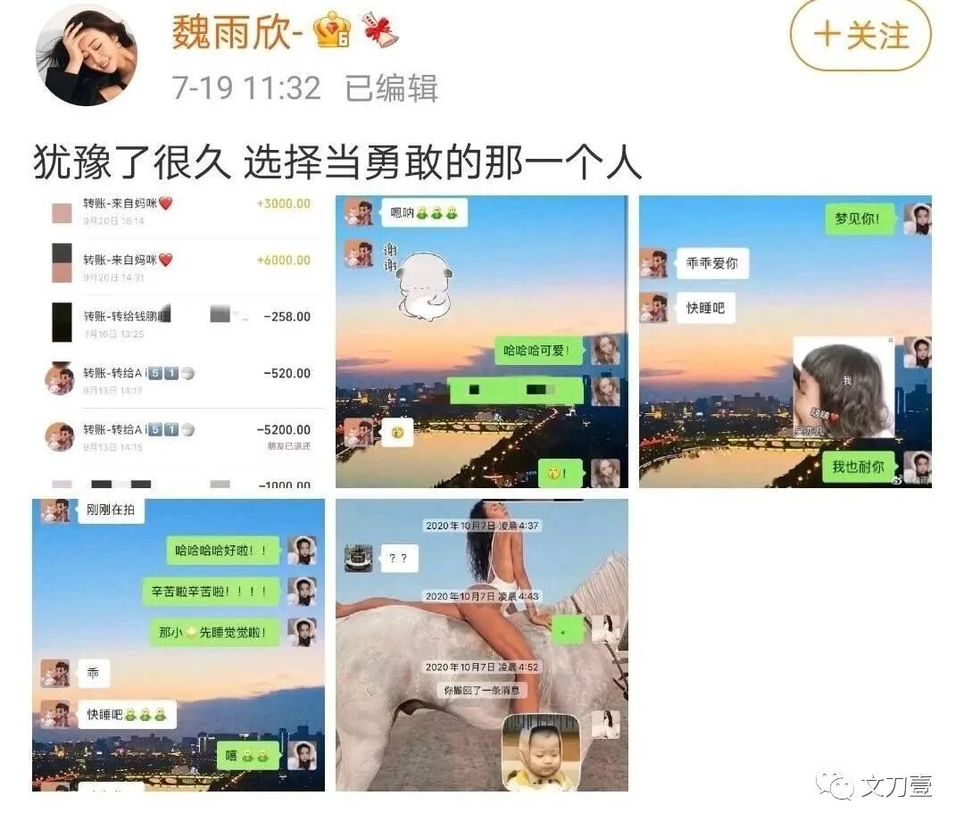 北电的学生魏雨欣也在犹豫过后,也选择勇敢发声,晒出了自己与吴亦凡的聊天记录。