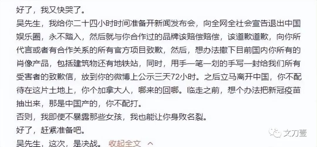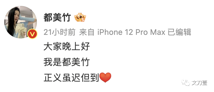 来看看那时的局势,张丹三甩出这篇聊天记录之前,都美竹刚刚在自己的社交账号发表了“决战”博文。