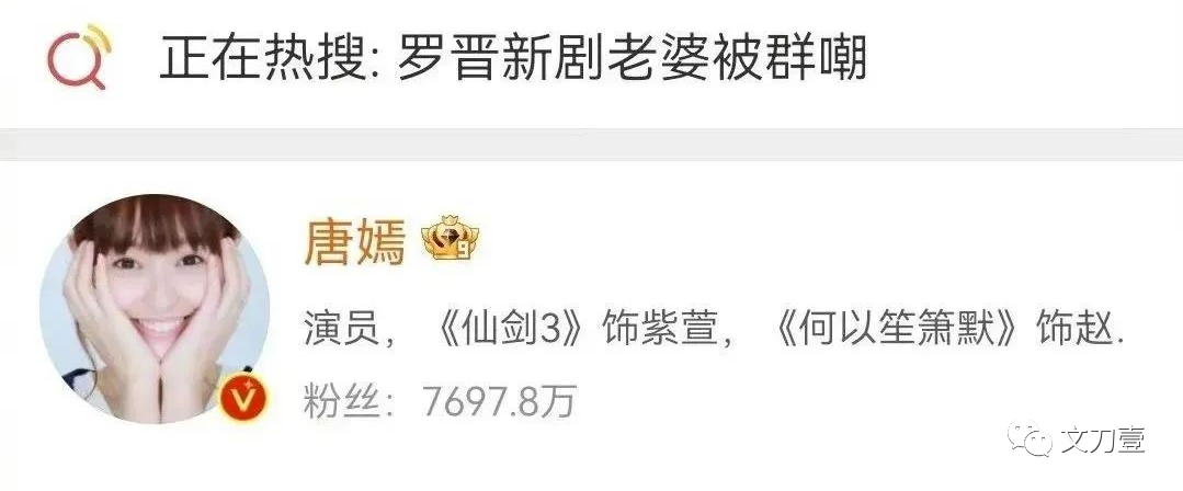 为了热度竟然安排了个“罗晋新剧老婆被群嘲”的词条,如此模棱两可、含糊其辞,惹得吃瓜群众还以为唐嫣出啥事了。