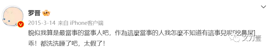 之前有传闻说他和女助理片场举止亲密,疑似出轨,罗晋直接硬刚回怼:“放P,滚!”