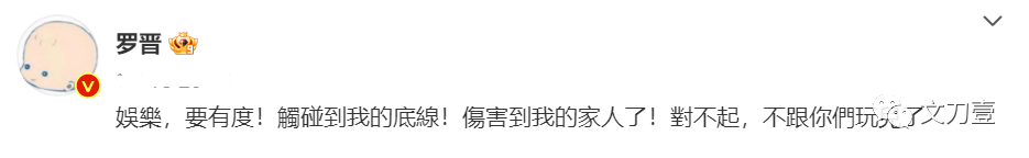 干脆直接在社交平台正面刚,放下狠话:“碰触到我的底线!伤害到我的家人!对不起!不跟你们玩儿了!”