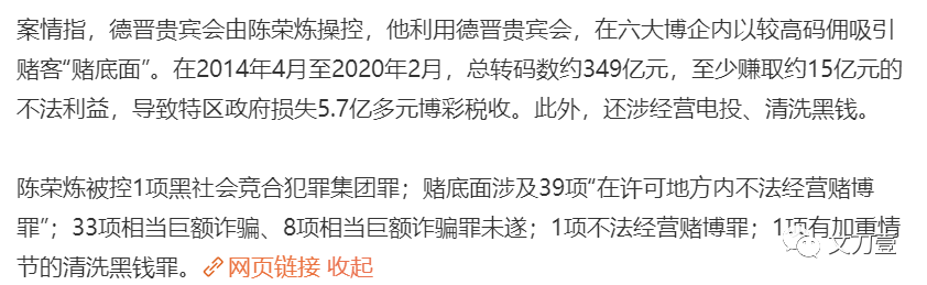 一切的幸福生活却在2022年戛然而止,1月份老公涉及非法经营等83项的罪名被澳门警方逮捕,起诉金额高达350亿港币。