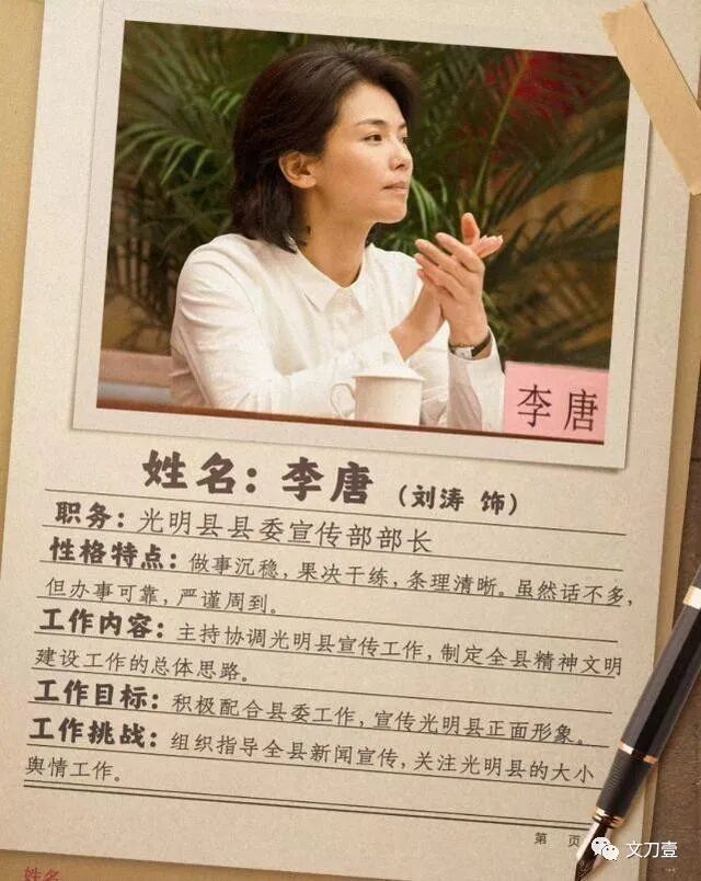 刘涛在剧里的戏份不多,她饰演了一个宣传部的部长,名叫李唐,仅仅算是一个客串的角色。
