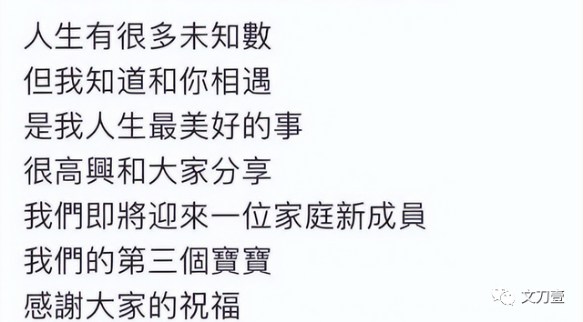 最近,郑嘉颖在网上晒出好消息,和老婆陈凯琳好事将近,即将迎来第三个宝宝。