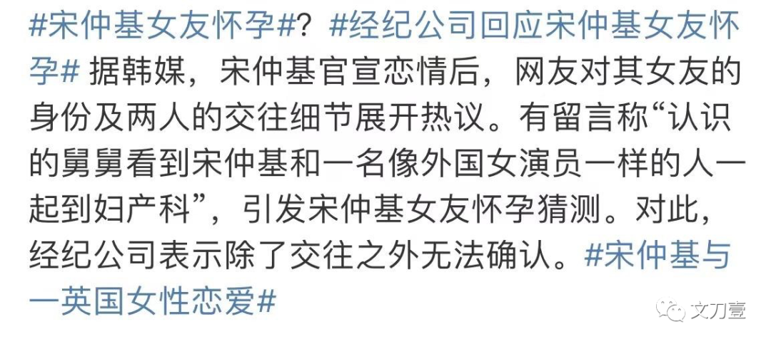 甚至在宋仲基刚公开恋情的时候,韩国网友在相关帖子下面评论,称认识的舅舅看到宋仲基和外国女演员现身妇产科,如果凯蒂真的怀孕,宋仲基可就是又当亲爹又当继父了。