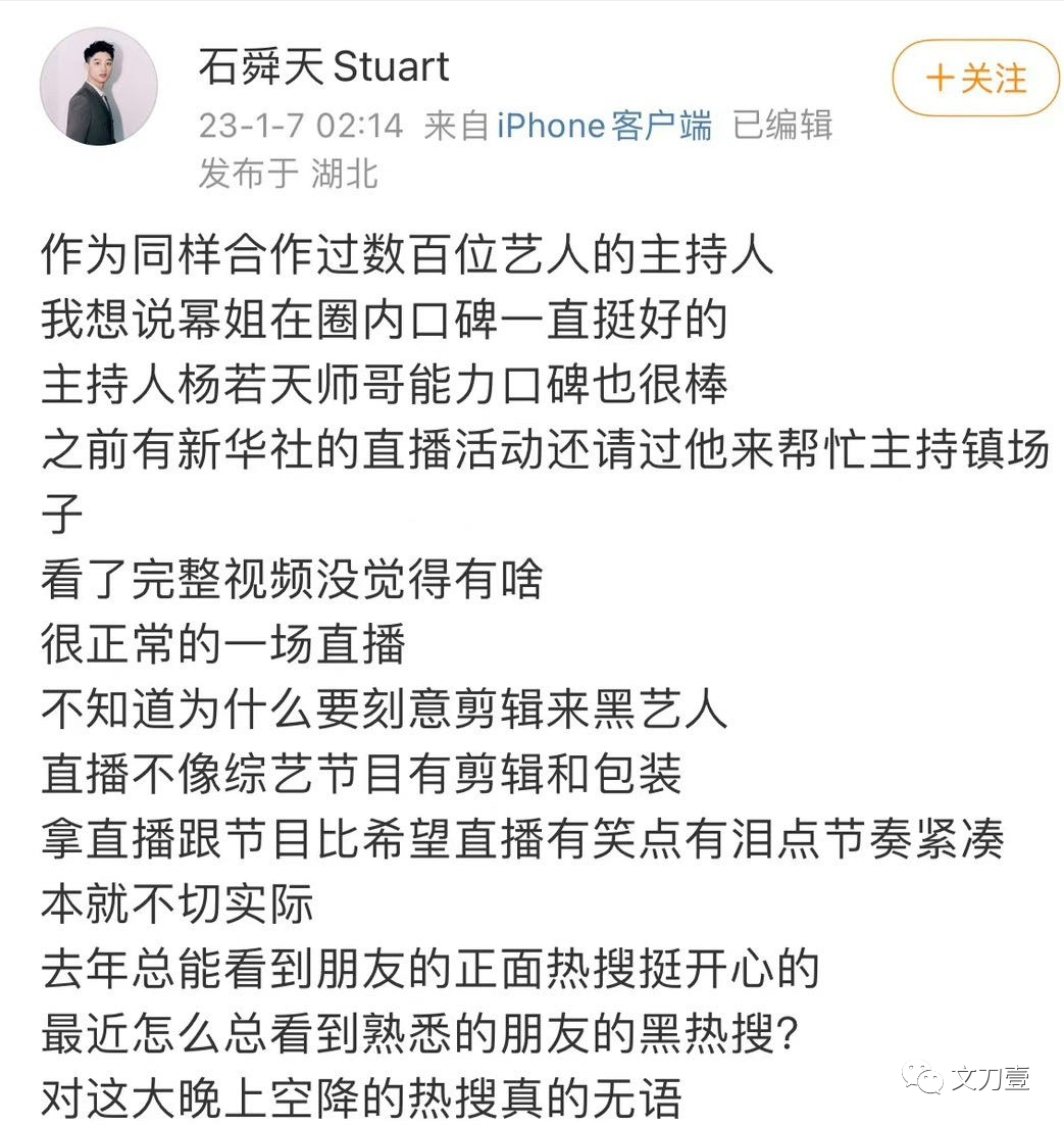 可网友在意的并不是这一点,这些人都不是当晚与杨幂合作的主持人,站在局外没有经历当天发生的事情,接连的发声只会让人觉得越描越黑。