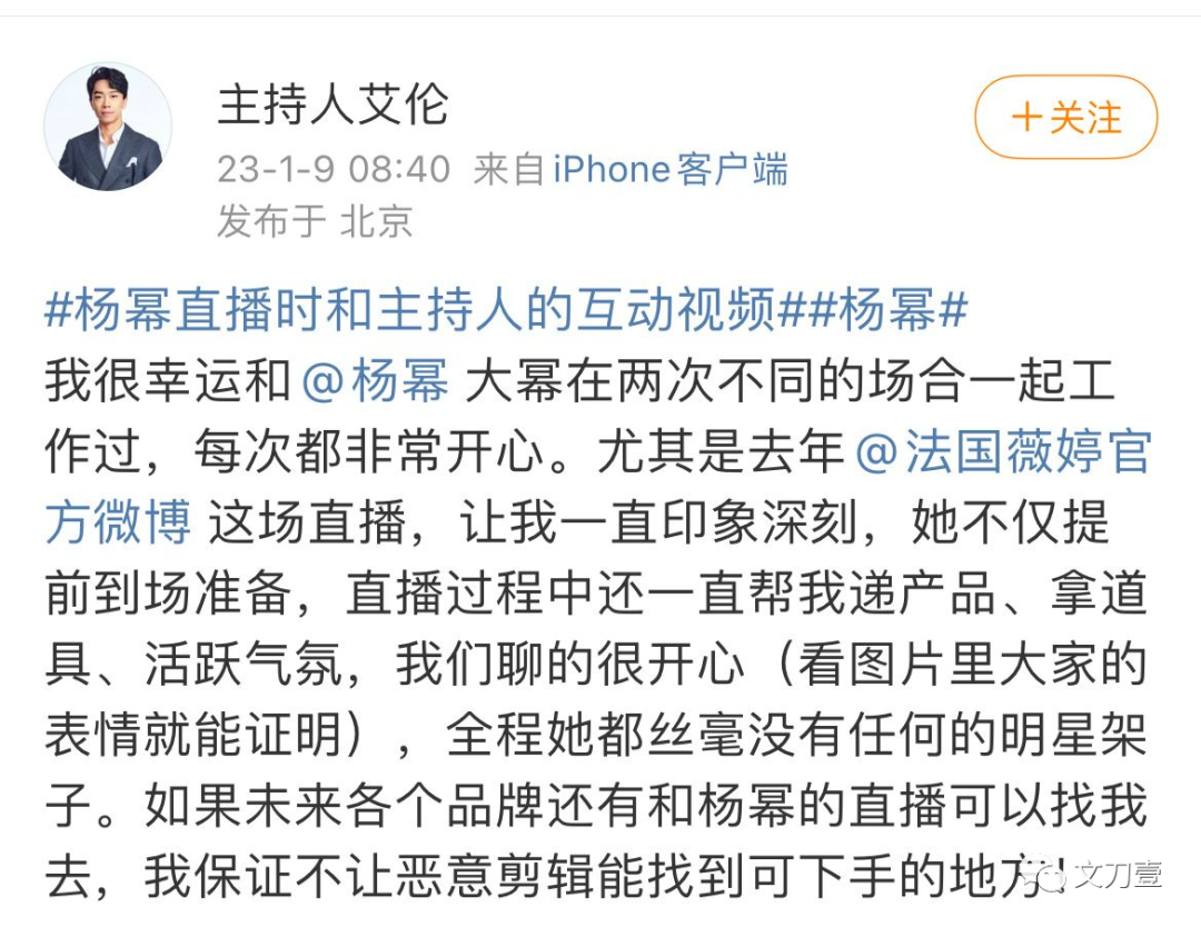不仅如此,还有很多曾与杨幂有过合作的主播也在线发文,称杨幂人很好。