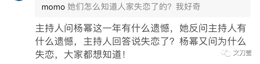 但没想到杨幂追着问,到最后还不忘补刀:分手一年好遗憾哦。