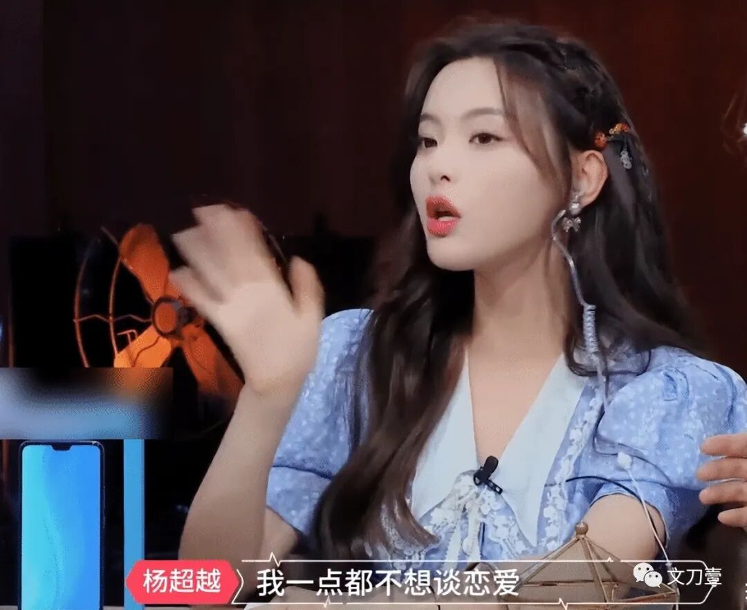 当戚薇建议杨超越找到一个真正爱自己人,收获甜甜爱情时,杨超越清醒且自知的表示,自己不想恋爱,只想挣钱。